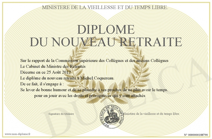 Envoyez par email votre Diplôme du nouveau retraité personalisé