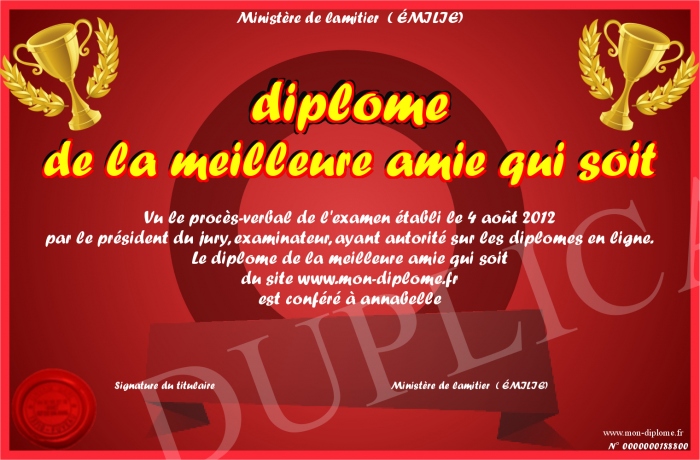 Envoyez par email votre diplome de la meilleure amie qui soit personalisé