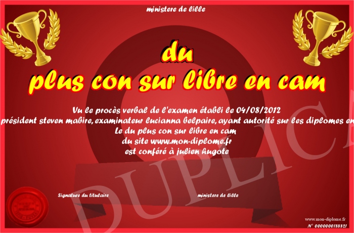 Envoyez par email votre du plus con sur libre en cam personalisé