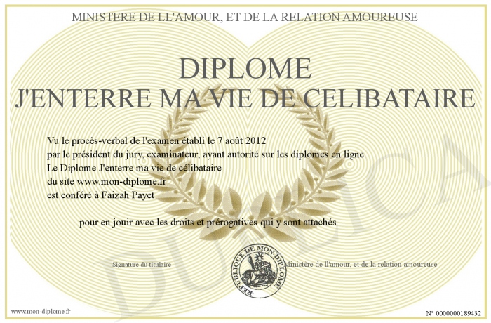 Envoyez par email votre Diplôme J'enterre ma vie de célibataire personalisé