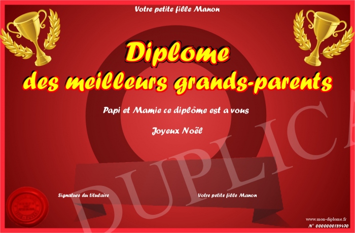 Envoyez par email votre Diplôme des meilleurs grands-parents personalisé