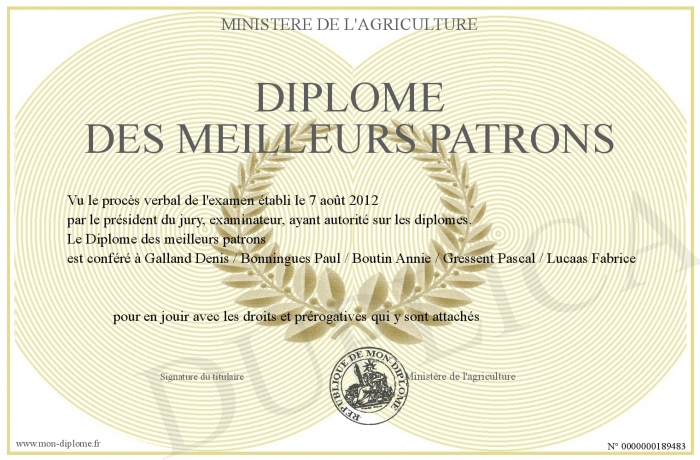 Envoyez par email votre Diplôme des meilleurs patrons personalisé