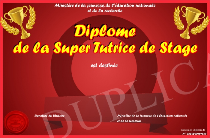 Envoyez par email votre Diplôme de la Super Tutrice de Stage personalisé