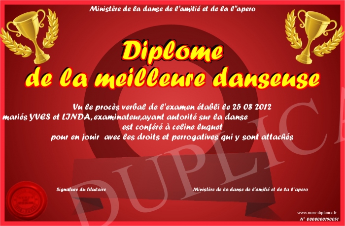 Envoyez par email votre Diplôme de la meilleure danseuse personalisé
