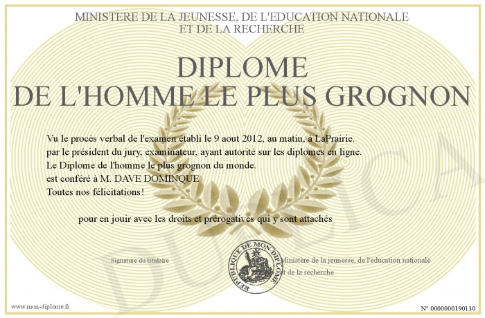 Envoyez par email votre Diplôme de l'homme le plus grognon personalisé