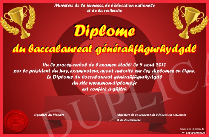 Envoyez par email votre Diplôme du baccalaureat générahfhgurhydgdl personalisé