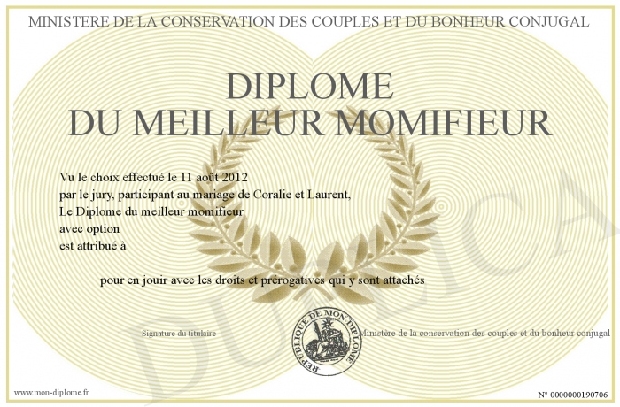 Envoyez par email votre Diplôme du meilleur momifieur personalisé