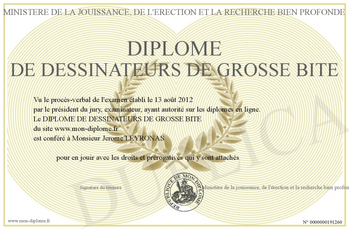 Envoyez par email votre DIPLOME DE DESSINATEURS DE GROSSE BITE personalisé