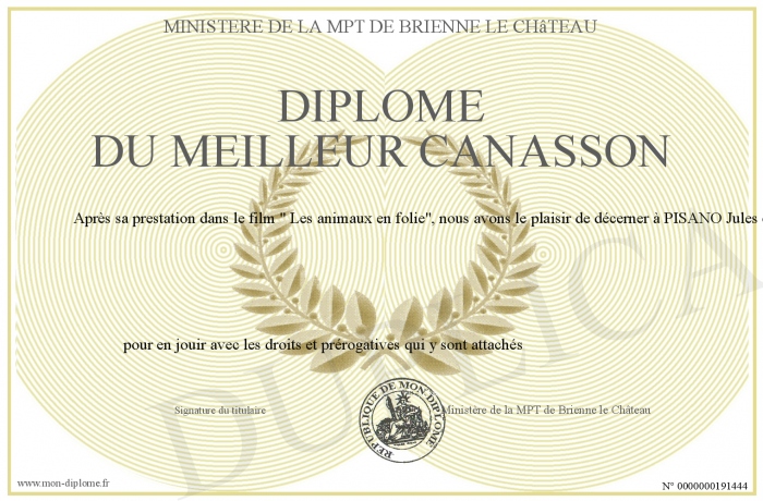 Envoyez par email votre Diplôme du meilleur Canasson personalisé