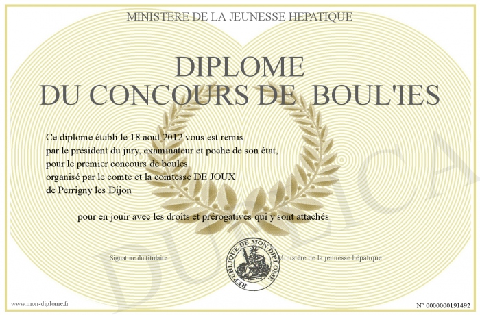 Envoyez par email votre Diplôme du concours de Boul'ies personalisé