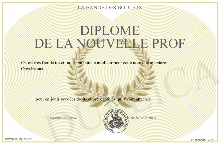Envoyez par email votre Diplôme de la nouvelle prof personalisé