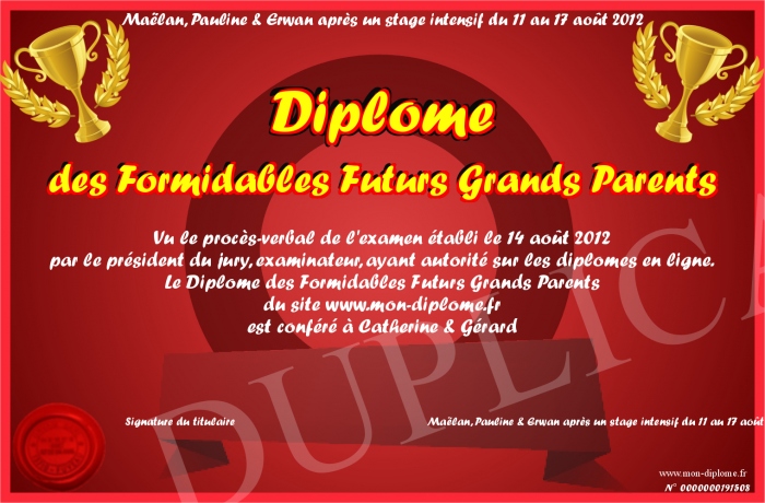 Envoyez par email votre Diplome des Formidables Futurs Grands Parents personalisé