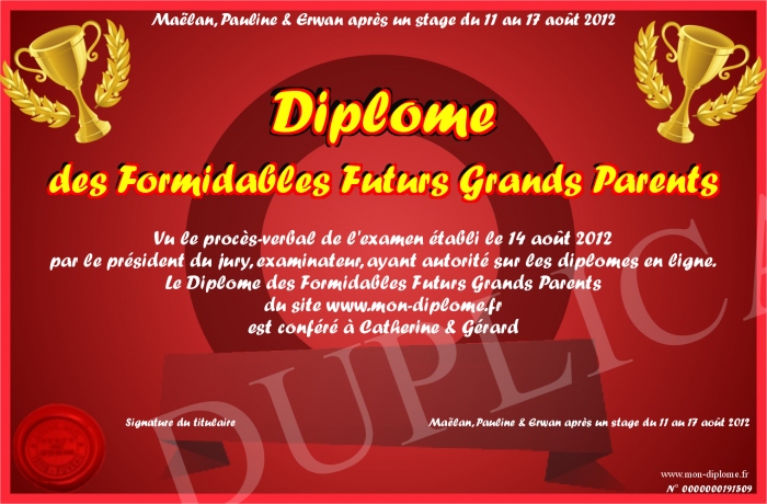 Envoyez par email votre Diplome des Formidables Futurs Grands Parents personalisé