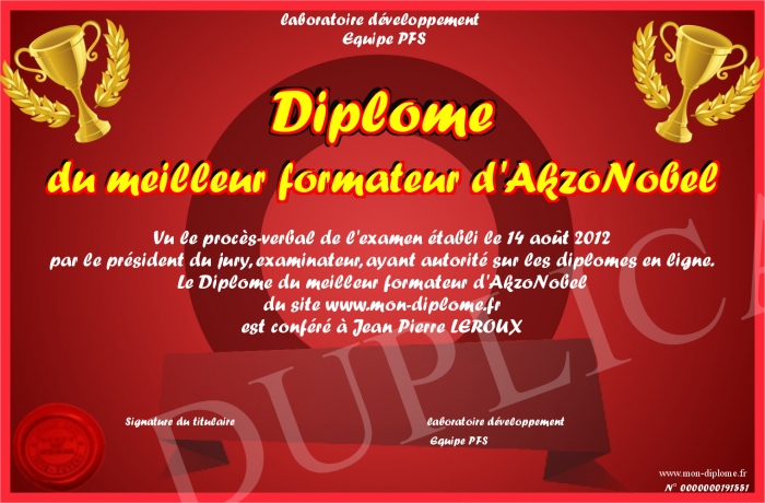 Envoyez par email votre Diplome du meilleur formateur d'AkzoNobel personalisé