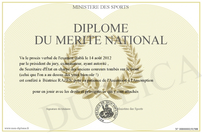 Envoyez par email votre Diplôme du Mérite National personalisé