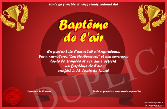 Envoyez par email votre Baptême de l'air personalisé