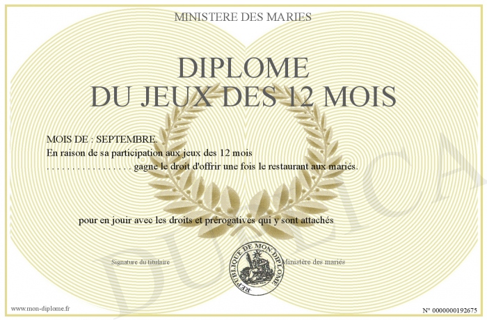 Envoyez par email votre Diplôme du jeux des 12 mois personalisé