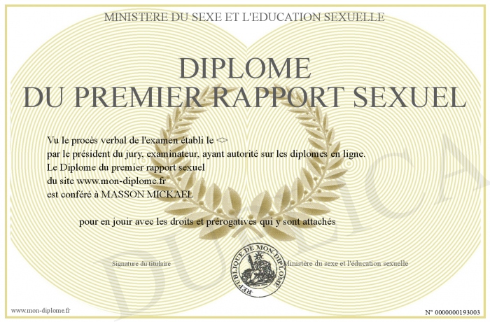 Envoyez par email votre Diplôme du premier rapport sexuel personalisé