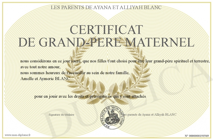 Envoyez par email votre Certificat de Grand-père maternel personalisé