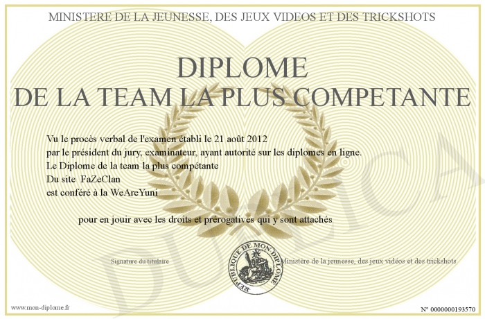 Envoyez par email votre Diplome de la team la plus compétante personalisé