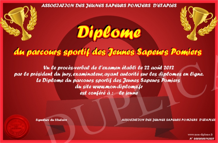 Envoyez par email votre Diplôme du parcours sportif des Jeunes Sapeurs Pomiers personalisé