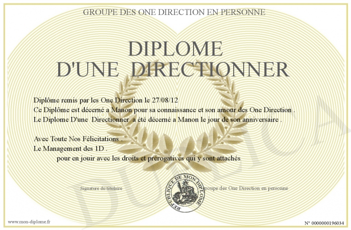Envoyez par email votre Diplôme D'une Directionner personalisé