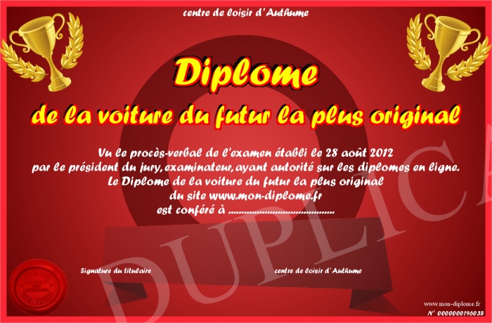 Envoyez par email votre Diplôme de la voiture du futur la plus original personalisé