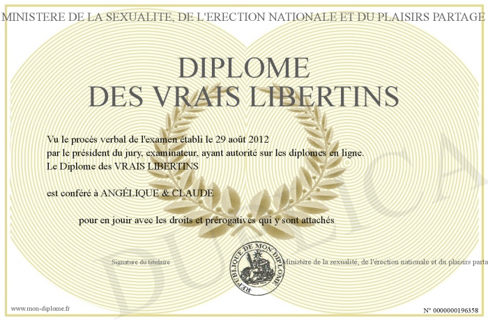 Envoyez par email votre Diplôme des VRAIS LIBERTINS personalisé