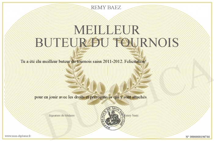 Envoyez par email votre meilleur buteur du tournois personalisé