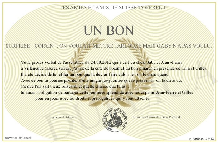 Envoyez par email votre Un bon surprise -copain- , on voulait mettre tarlouze mais Gaby n'a pas voulu. personalisé