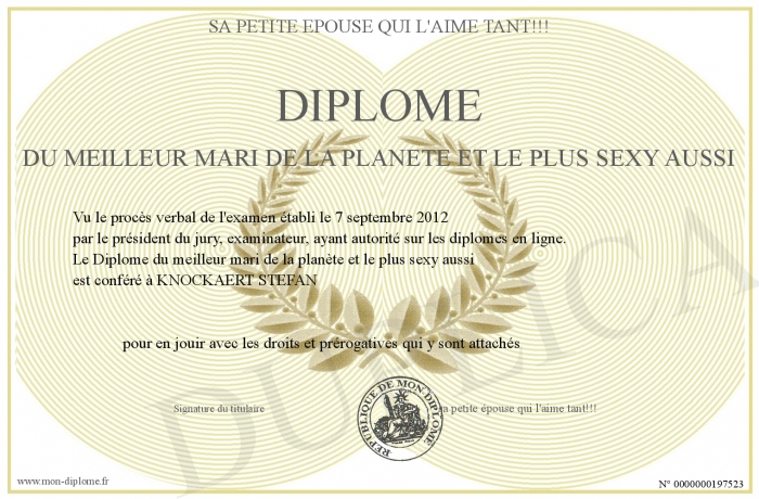 Envoyez par email votre Diplôme du meilleur mari de la planète et le plus sexy aussi personalisé