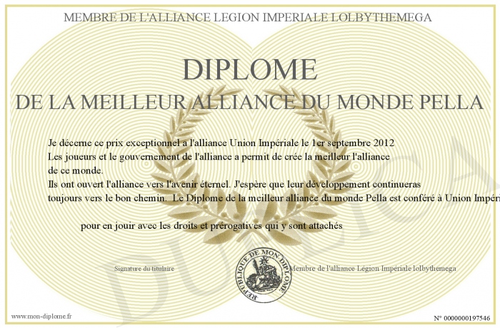 Envoyez par email votre Diplôme de la meilleur alliance du monde Pella personalisé