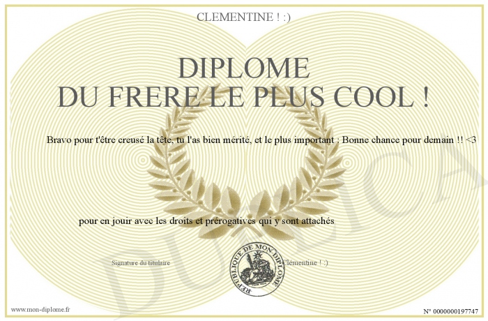 Envoyez par email votre Diplôme du frère le plus cool ! personalisé