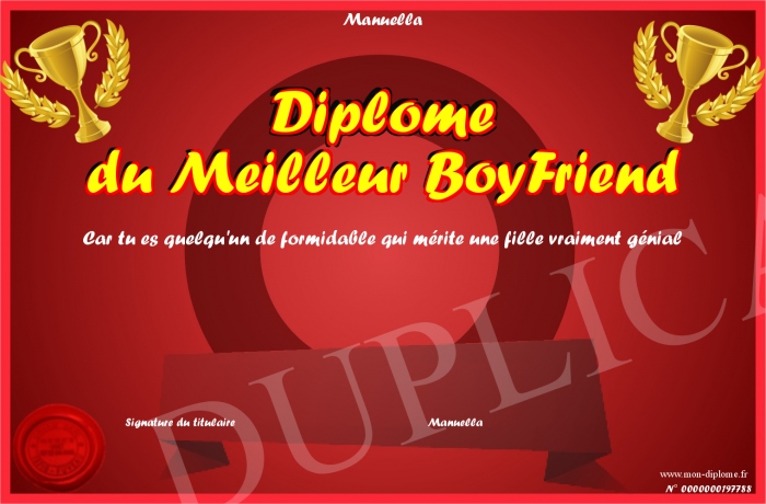 Envoyez par email votre Diplôme du Meilleur BoyFriend personalisé