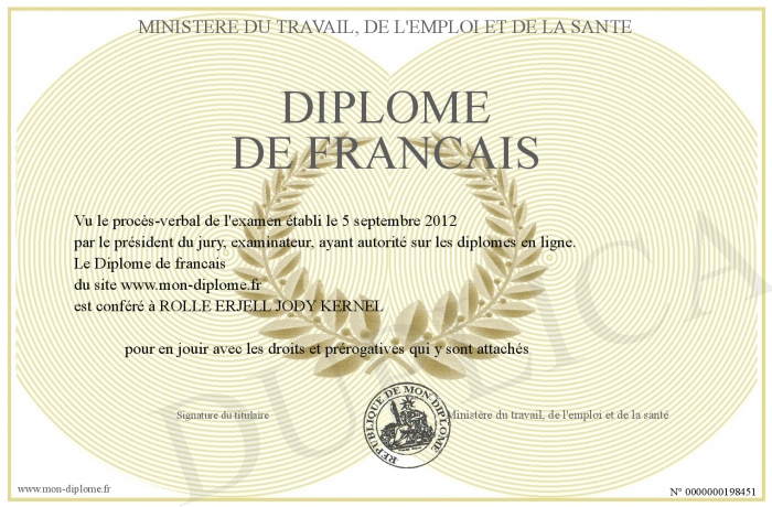 Envoyez par email votre Diplome de francais personalisé