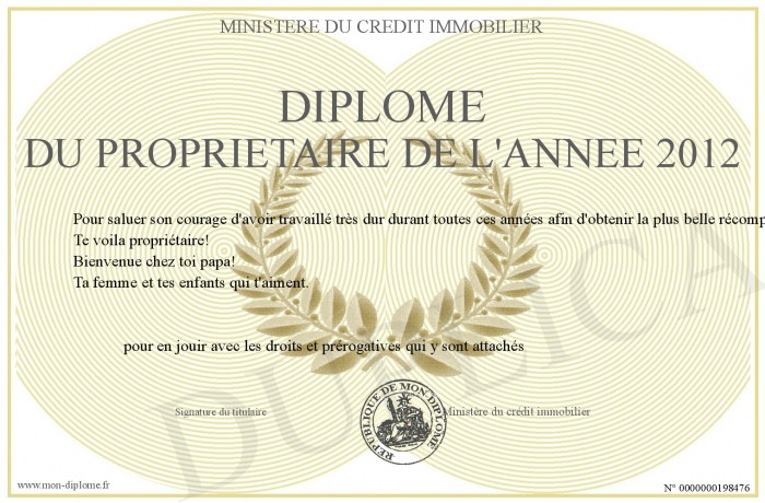 Envoyez par email votre Diplôme du propriétaire de l'année 2012 personalisé