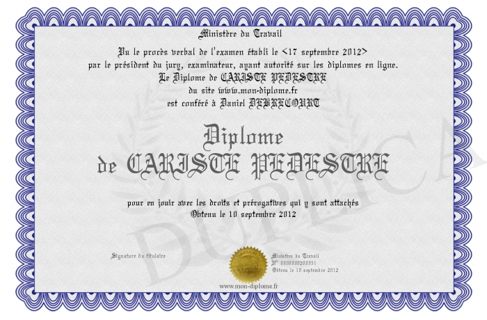 Envoyez par email votre Diplome de CARISTE PEDESTRE personalisé