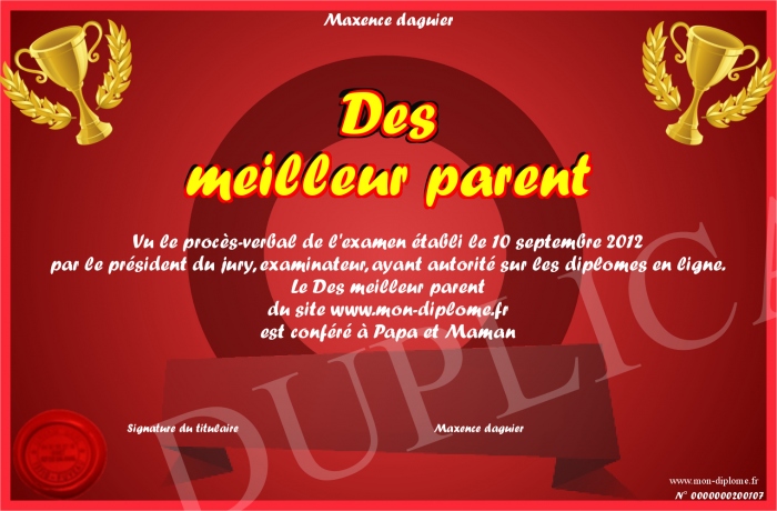 Envoyez par email votre Des meilleur parent personalisé
