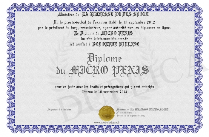 Envoyez par email votre Diplôme du MICRO PENIS personalisé