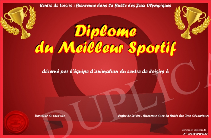 Envoyez par email votre Diplôme du Meilleur Sportif personalisé