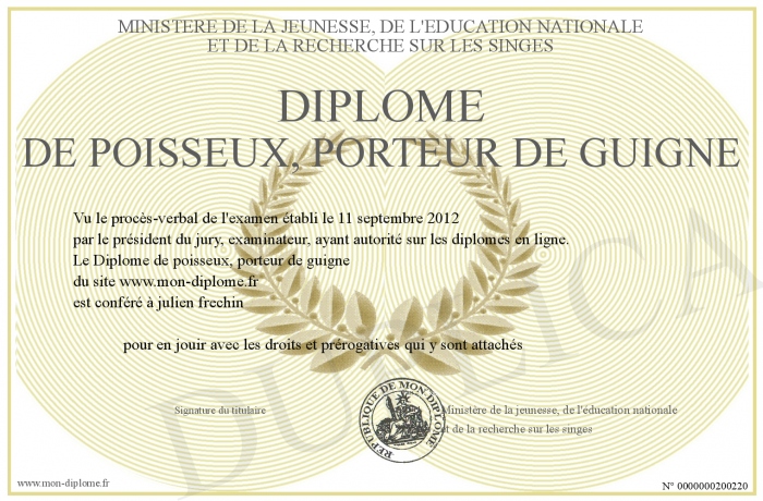 Envoyez par email votre Diplôme de poisseux, porteur de guigne personalisé