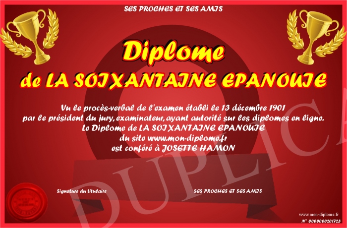 Envoyez par email votre Diplôme de LA SOIXANTAINE EPANOUIE personalisé