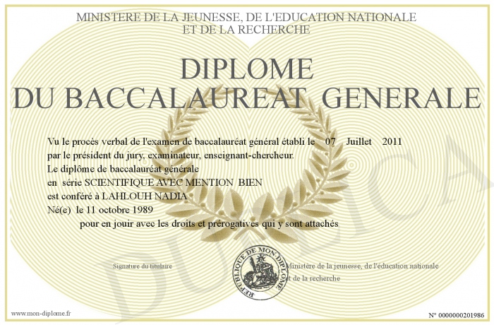Envoyez par email votre Diplôme du baccalauréAT GéNéRALE personalisé