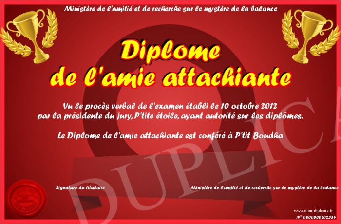 Envoyez par email votre Diplôme de l'amie attachiante personalisé
