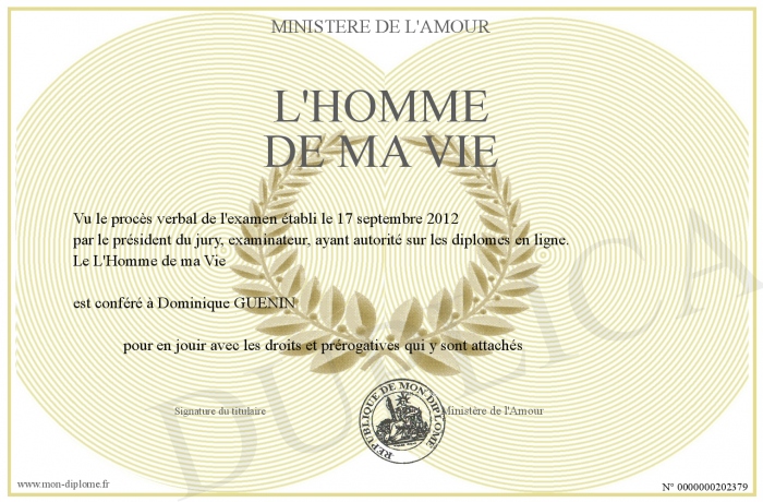 Envoyez par email votre L'Homme de ma Vie personalisé