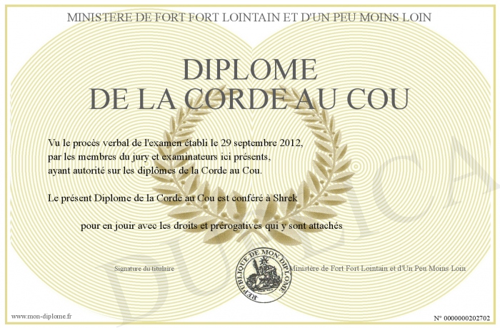 Envoyez par email votre Diplôme de la Corde au Cou personalisé