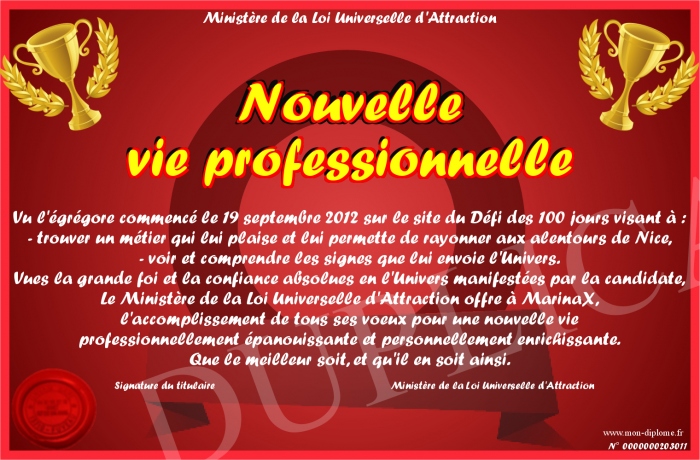 Envoyez par email votre Nouvelle vie professionnelle personalisé