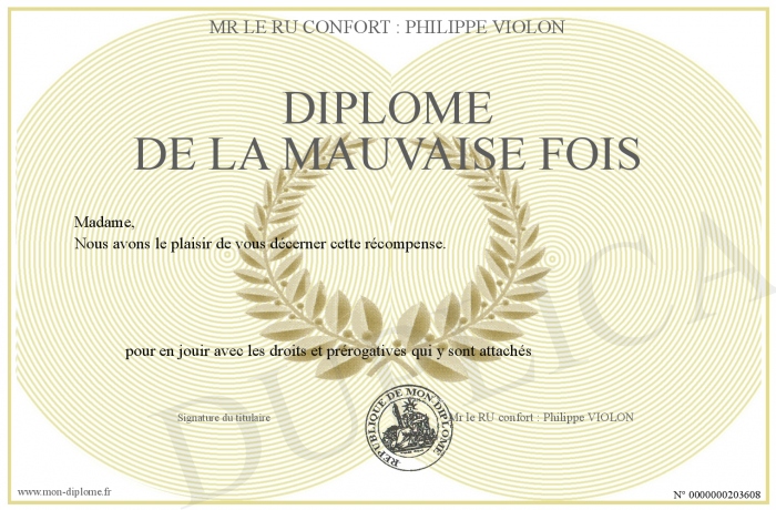 Envoyez par email votre DIPLOME DE LA MAUVAISE FOIS personalisé
