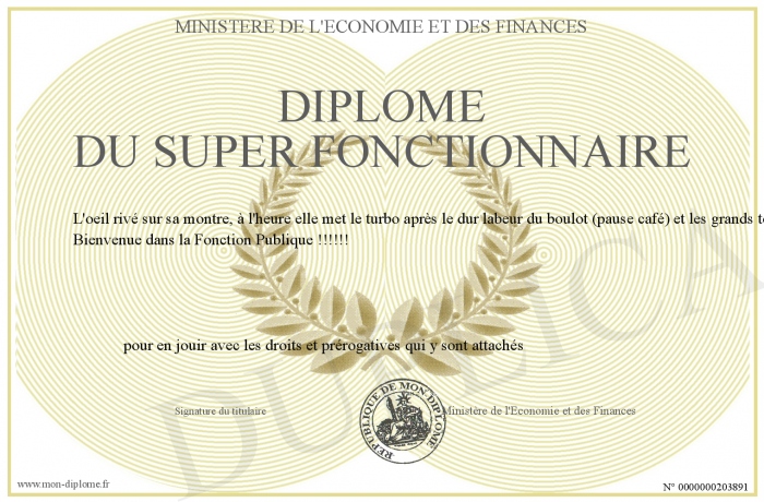 Envoyez par email votre Diplôme du Super Fonctionnaire personalisé