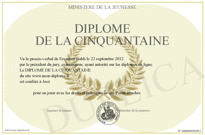 Envoyez par email votre DIPLOME DE LA CINQUANTAINE personalisé